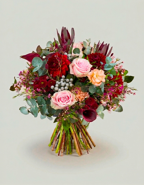 Bouquet Altea autunnale dai toni bordeaux con tocco di rosa chiaro