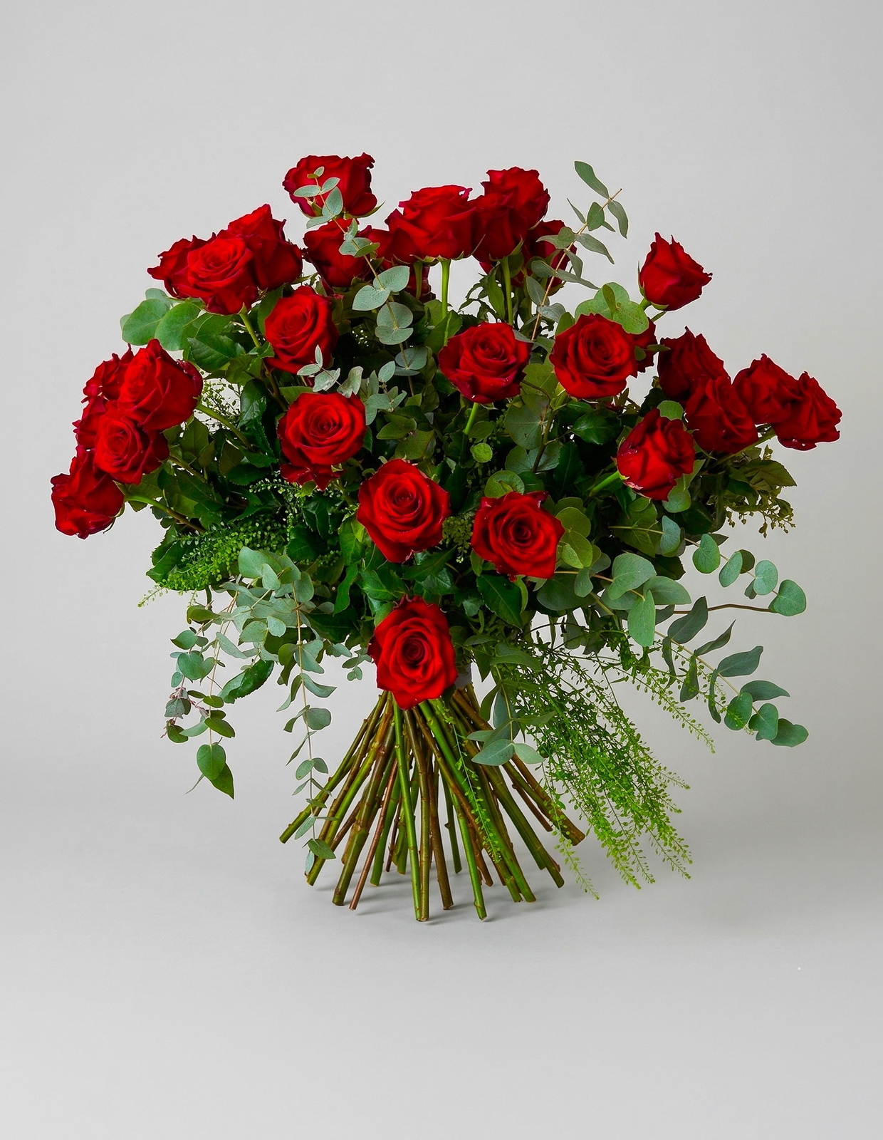 Imponente e romantico bouquet composto da 25 rose rosse, simbolo di amore profondo e passione. Una composizione elegante e scenografica, perfetta per occasioni importanti e dichiarazioni d’effetto.
